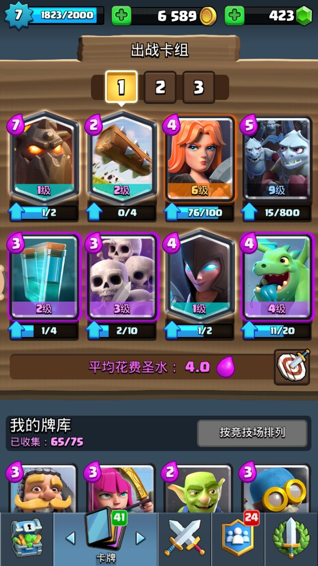 最后就是我个人比较喜欢的 supercell 的 游戏 皇室战争 这款游戏 看似简单 玩起来就比较烧脑了 差不多属于养成类游戏 收集卡片升级卡片 还有稀有的传奇卡片 和朋友 宿舍的同学们组建部落 一起打杯 一起奋斗。