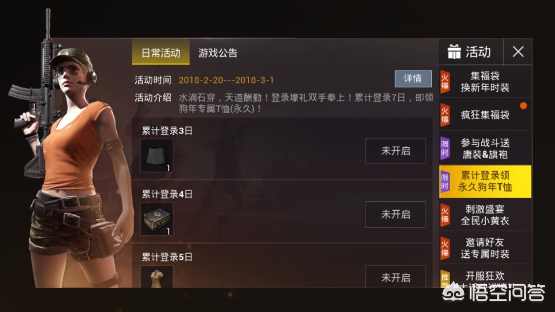 累积登录7日,送狗年哈士奇专属时装,就是白色衬衣上印了一只哈士奇,服装看起来一般,但是称号非常牛-狗年专属。以上是累积登录就可以领取的,非常容易就可以得到的服装,一定要记得是累积登录哦,中间不能断开。