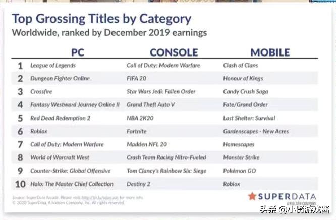 近日,全球游戏2019年12月营收榜前10名榜单终于是出炉了,现在都2020年2月了,才统计出去年12月的榜单,不得不吐槽一句,这也太慢了吧!这当中,PC端的第一名和第二名依然被两大端游霸占,英雄联盟位居第一,而DNF排在第二!