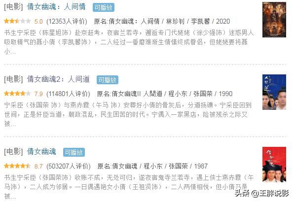 这当中存在着一个首因效应,影迷先入为主的观念认为聂小倩就该是王祖贤那样,无论换做谁演,观众都不会买账。