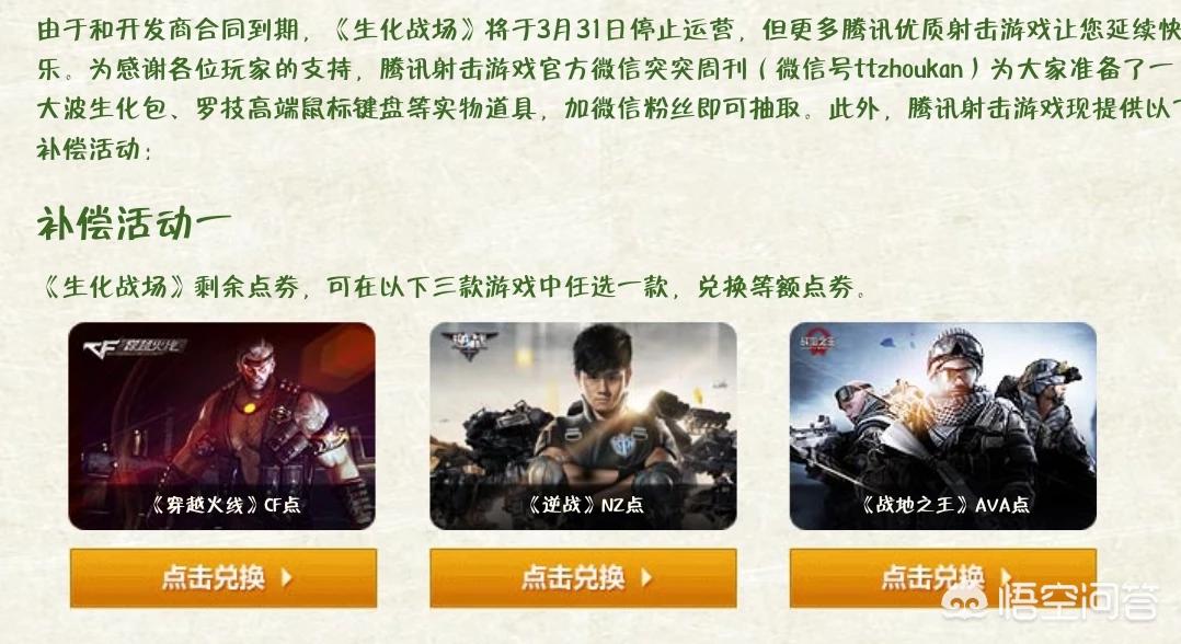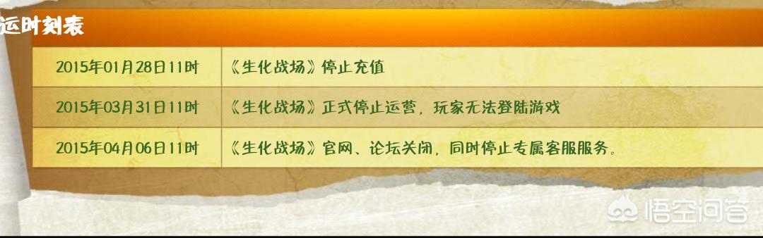 2.大型游戏公司游戏停服,现在很多游戏倒闭都是用这一手法。就说腾讯游戏——《生化战场》,这款游戏是我玩过的一款游戏,最后停服了,先是不能再继续充值(2015年1月28日停止充值),然后号就登不进去了(2015年3月31日正式停止运营,玩家不能登录游戏)。