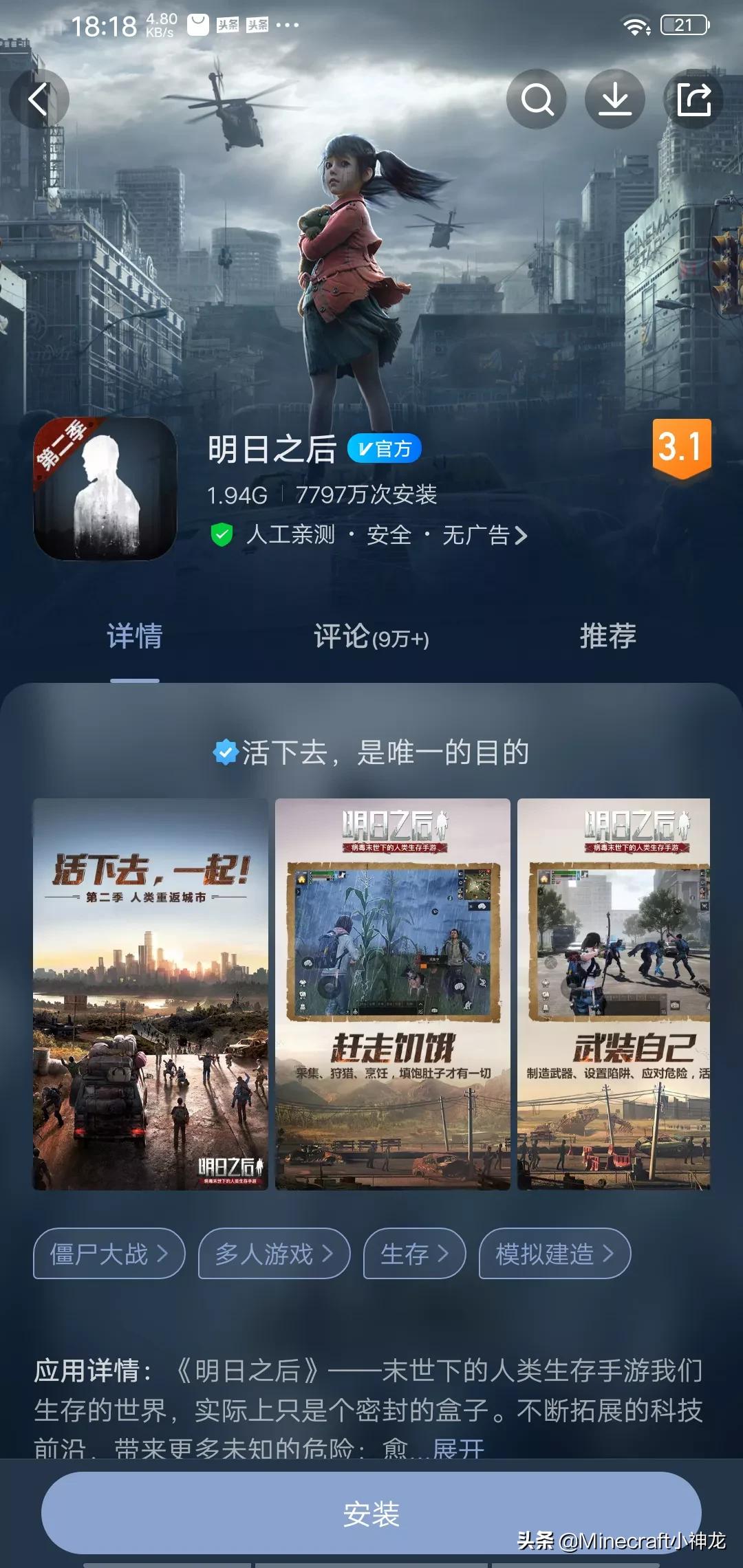 第二,明日之后,这个游戏虽然有一些氪金,但是你零氪也会变得很强,这个游戏主要是靠肝,只要你每天够勤快,做任务,想要成为大神不再是困难