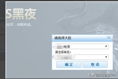 第二步 点击之后页面会弹出“请选择大区”对话框,然后选择角色所在的服务器后点击确定按键。