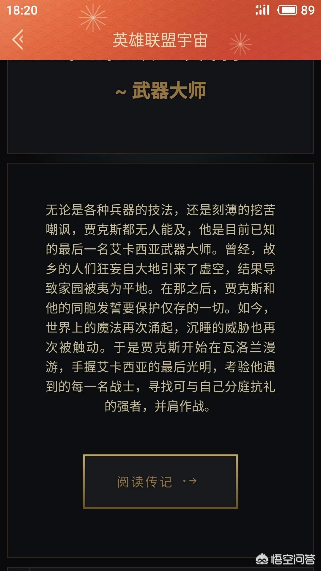 ①武器大师贾克斯实力非凡,以武入圣。我们都知道在英雄联盟里面贾克斯有一句台词就是“一个能打的都没有”,实际上雅克斯特坦实力非常的强劲,是咱们大后期的单挑王。与此同时贾克斯还以自己一个凡人之躯曾经杀死过几个神明,其中有一个正在飞升的也被贾克斯屠戮。瓦格兰大陆是一个崇尚实力的地区,因此即使是剑魔,在遇到贾克斯的时候,也对贾克斯的实力非常的敬佩。