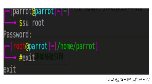 3、接下来通过输入su 命令切换到root,再输入root用户密码,可以正式进入到root用户,若使用exit可以退出;