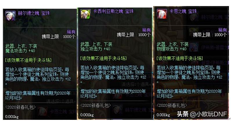 (4)使徒珍奇宝珠自选礼盒,可在6个不同部位的宝珠中自选获取一个,相比以往,新增耳环140四维的宝珠,其余无变化!比较神奇的是,居然是腰带1-50技能等级+1,有点意外,秀儿估计这临时工的锅,应该是鞋子部位的技能宝珠。