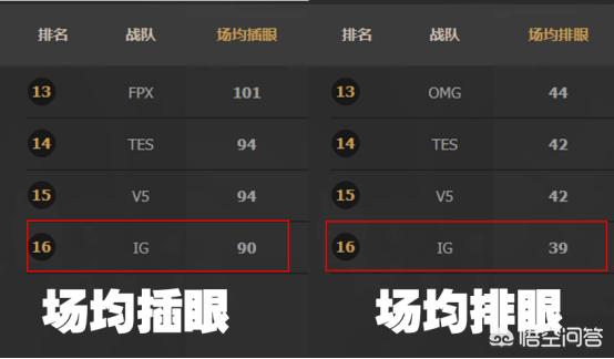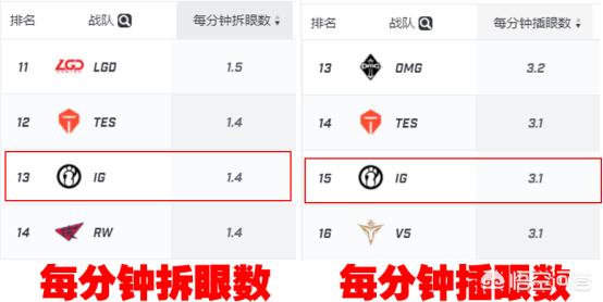 插眼/排眼数量的差距就造成了插眼/排眼率的差距,在每分钟拆眼数的排行中,IG也属于末尾排名,每分钟插眼数更是直接垫底。也就是说自己队不爱插眼,同时也不爱排其他队伍插的眼,以至于出现了比赛中我们经常看到的,IG在视野盲区突然暴毙的情况。