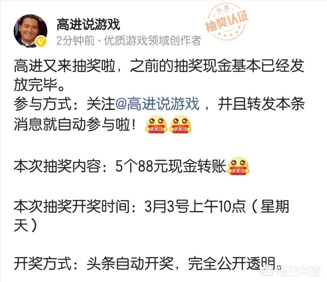 最后,高进搞了抽奖活动,抽5个88元红包,星期天开奖。欢迎查看我的头条主页置顶的抽奖头条参加。不是这条,是我头条主页置顶的。