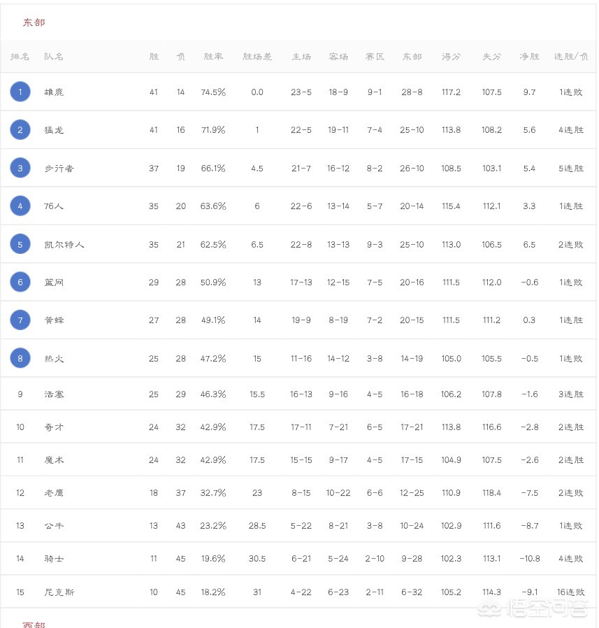 谢谢邀请。我们先来看看目前东部排名情况: