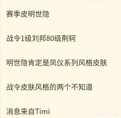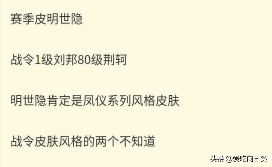 虽然体验服更新到了新的版本,但是官宣曝光的皮肤只有明世隐一个赛季皮肤,另两款战令皮肤都还没有曝光,但是根据网络上的消息,这两款皮肤分别为一级刘邦的皮肤和80级阿珂的皮肤。可以说虽然这些消息来自网络,但是八九不离十了。毕竟以前很多消息都并非来自官网,直到后来全部实现了。