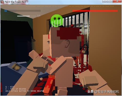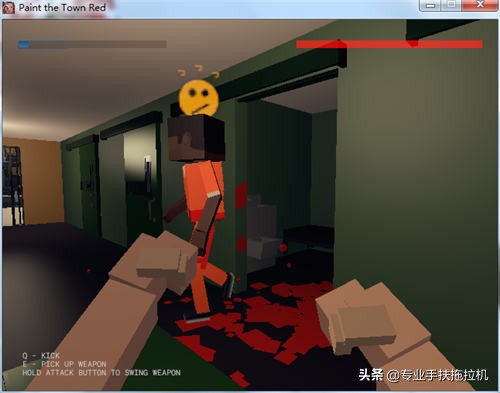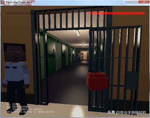 先跑到上面那个警察房间里面,那个武器栏上面有一把散弹枪,跳起来就可以拿到,拿着直接把那砍刀大佬给喷掉,再把肌肉壮汉给喷掉,然后剩下就好办了。给壮汉扔苹果他会变成你的友军