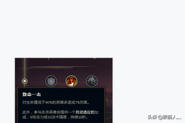 5、8.6版本上单鳄鱼副系符文方面,主要有两种:一是副系坚决系,然后点出骸骨镀层和复苏之风,这种的话符文只提供攻击速度和生命值,没有加攻击力。二是副带主宰系,然后点出猛然冲击和贪欲猎手,这种的话有攻击速度和攻击力,但是没加生命值。