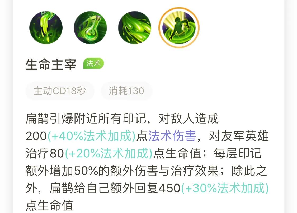这件装备的被动技能,对英雄造成伤害会提高20点法术伤害,持续5秒,可以叠加10层。如果同一个英雄命中了10次,直接就是造成200点的法术额外伤害,扁鹊就只要直接扔药瓶子就可以了。
