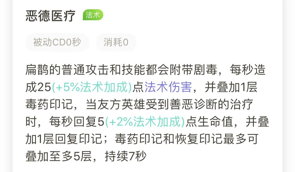 也是叠加伤害,也是5层伤害,持续时间7秒。痛苦面具的装备改动,间接加强了扁鹊的被动技能伤害