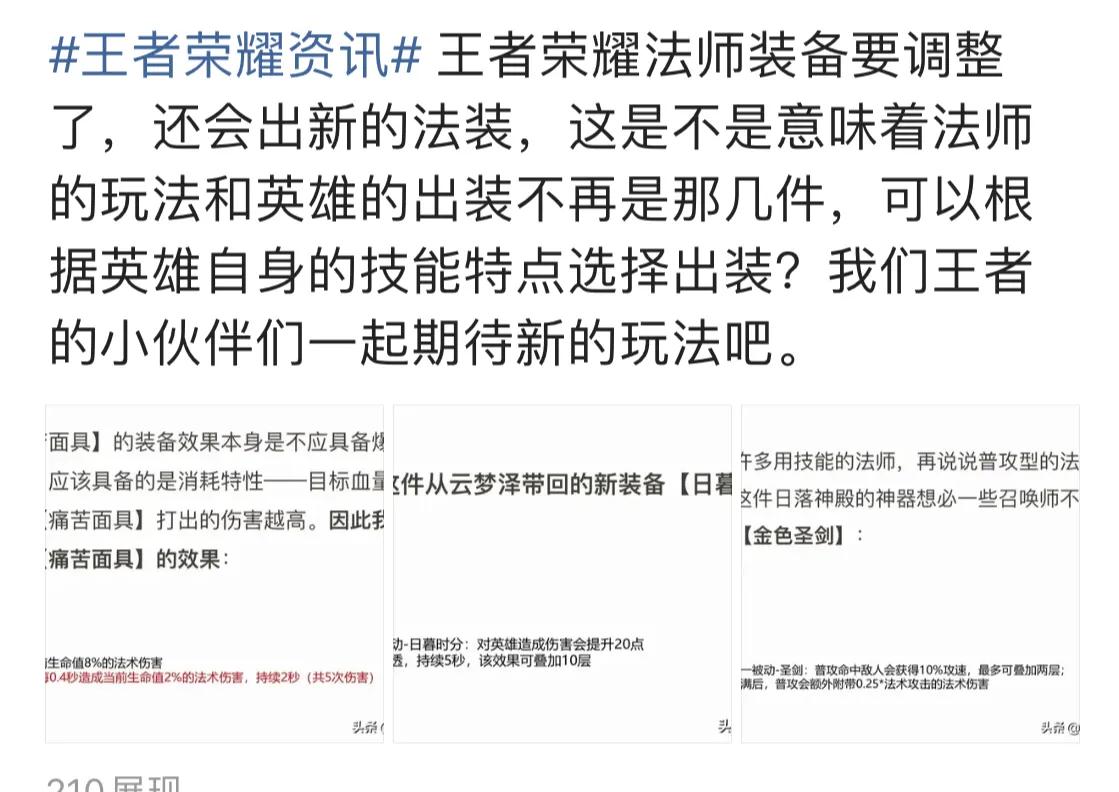 几个赛季以来,王者官方不断收到法师对攻节奏过快,出装相近的反馈,相近的出装导致大部分法师的伤害模式和特性逐渐趋同,因此官方准备丰富法术类装备的选择,让不同类型的法师能有独特的装备可出,通过装备适配和突出他们的英雄特点。