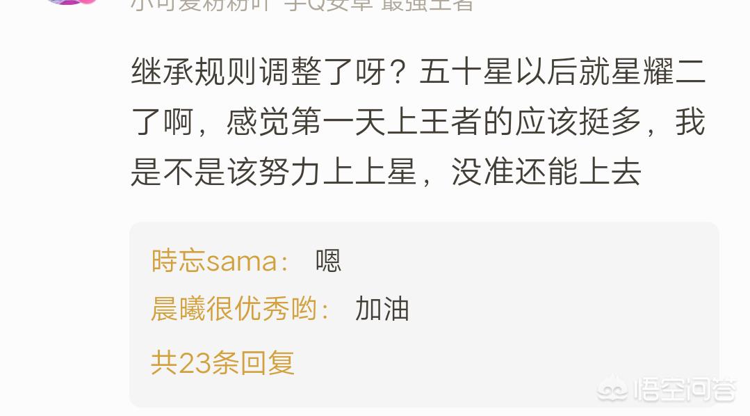而新的一轮继承制我们可以看到,0-9星是钻石二,10-19星是钻石一,20-29星是星耀五,30-39星是星耀四,40-49星是星耀三,50-9999是星耀二。这次的改动有两点,第一点就是20-50星这个范围区分开来,每10颗星都有一个跨度,这样就给大家提供了上分的动力。另外一个就是0-9星和0-10的区别,别看这一颗星的细节,区别很大,很多玩家有时候就是因为这一颗星,而掉了更多的星。