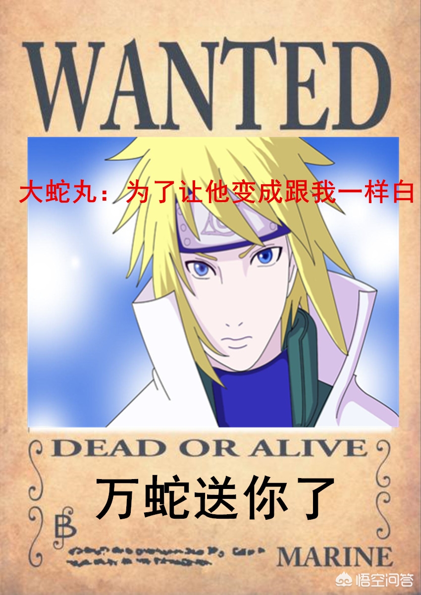 如果是大蛇丸的话,我倒是不担心他钱够不够,总觉得他会给二代最低的悬赏金额,以为他个人跟二代不是很合得来,如果要是真有人抓住给他送来了,他也无福消受吧。对于蛇叔来说,悬赏的目的肯定就是找器皿,那就要找最年轻最帅气的呀,当然是四代悬赏会高很多,悬赏海报是这样的
