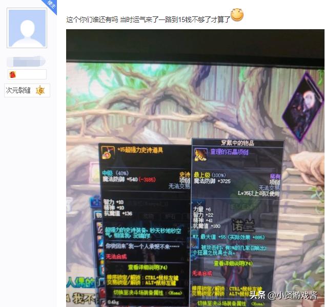 DNF玩家晒出+15超强力史诗道具,直言当时运气好一路上15钱不够了才不上了,如何评价