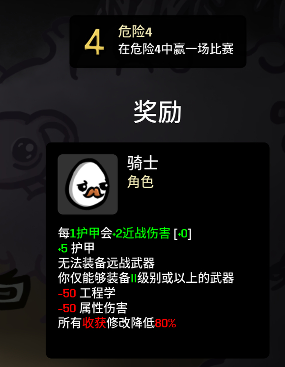 在危险4中赢得一场比赛即可解锁骑士