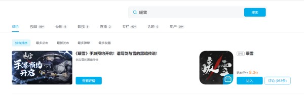 因为本作是B站代理的,所以玩家可以直接去B站搜索“暖雪”进入暖雪官网。