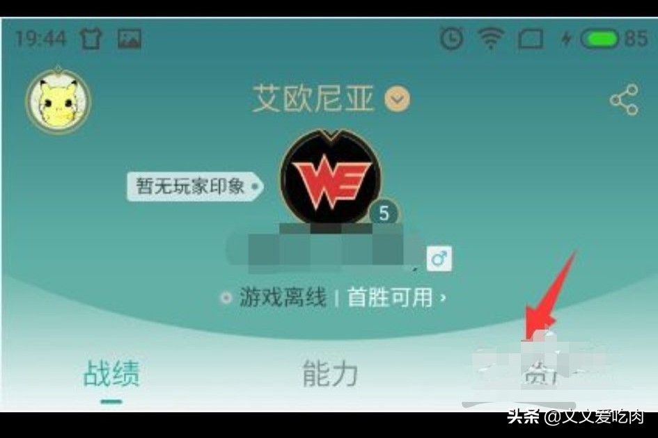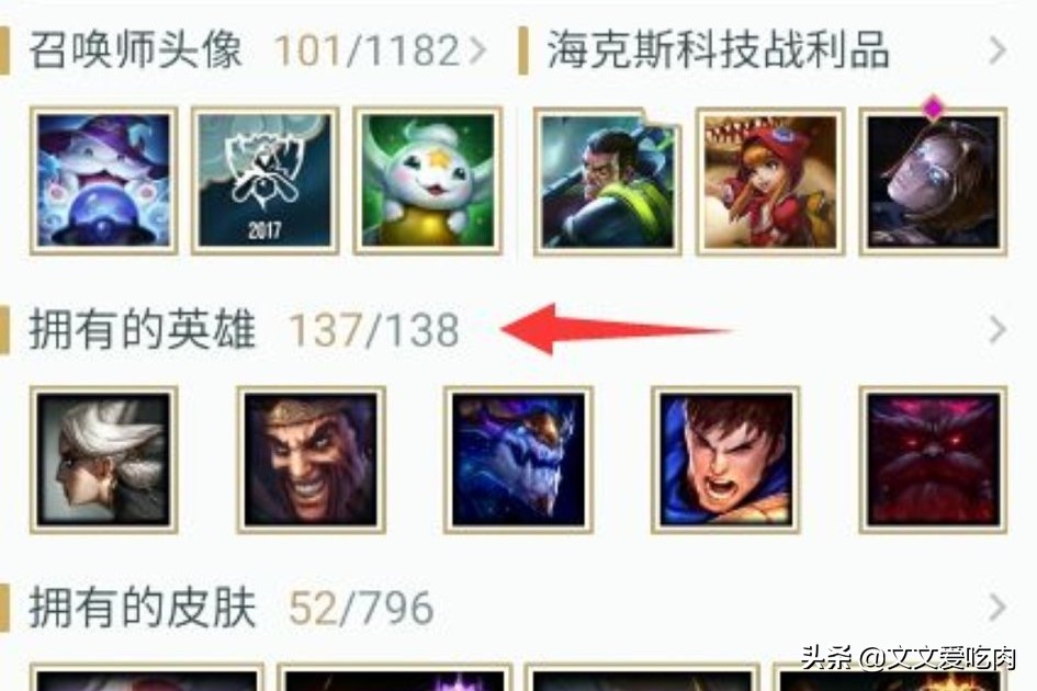 2、在战绩页面右上角找到【资产】,在资产页面里可以查看你拥有的金币,英雄,皮肤,召唤师头像和海克斯科技战利品。