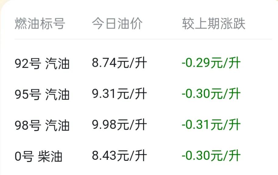 汽油涨价时,加满一箱汽油多花20块钱,汽油降价,加满一箱汽油,只节省10块钱。此次92号汽油每升降价0.29元,降价力度都跑不到100公里。