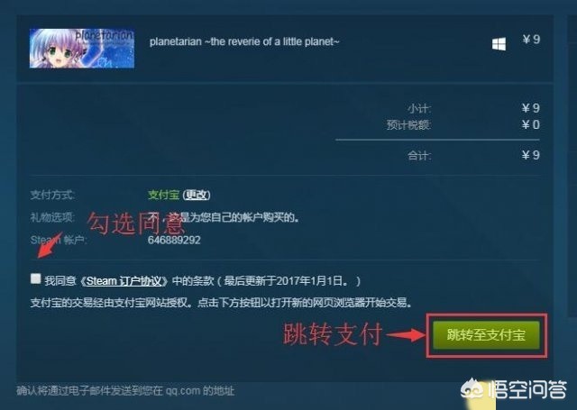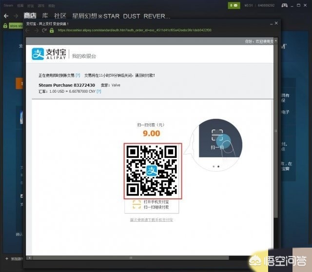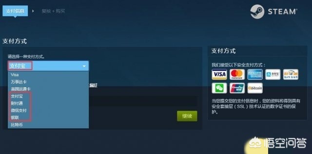 6.在steam上购买游戏可以使用支付宝,微信,财付通,银联等常见支付方式,这里以支付宝为例