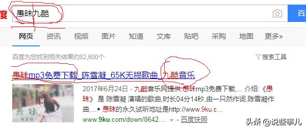 1、先确定你要下载什么歌曲,记下歌曲名字,在百度中输入:“歌曲名字+九酷”如图如果我要下载一首“愚昧”这首歌曲,我就在百度中输入“愚昧九酷”