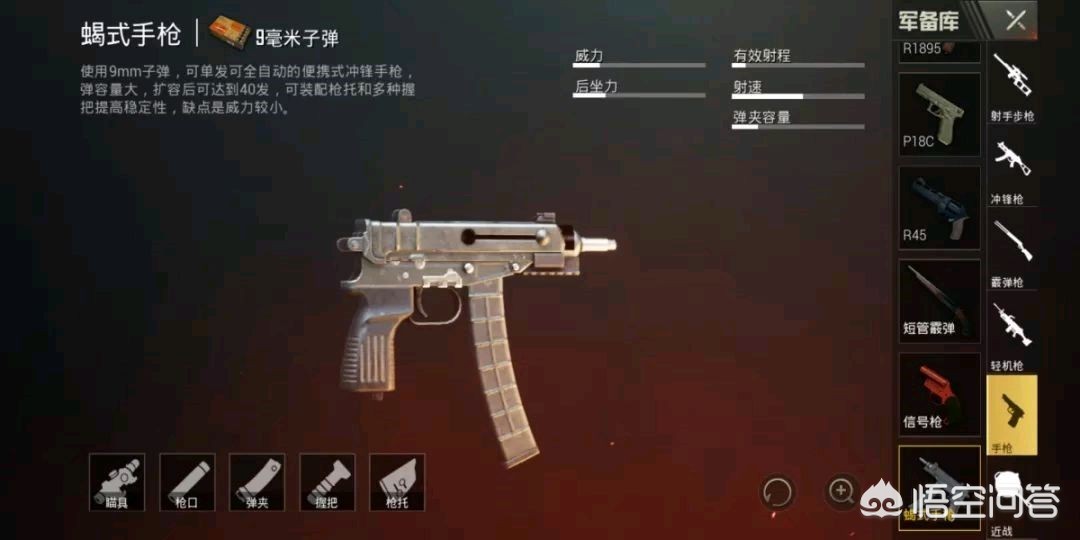 这是一款可以媲美冲锋枪的手枪,配件多达5个,扩容后是40发,使用9毫米枪弹。手枪只有落地用的尴尬地位或许会改变,在四个地图都可以刷出。