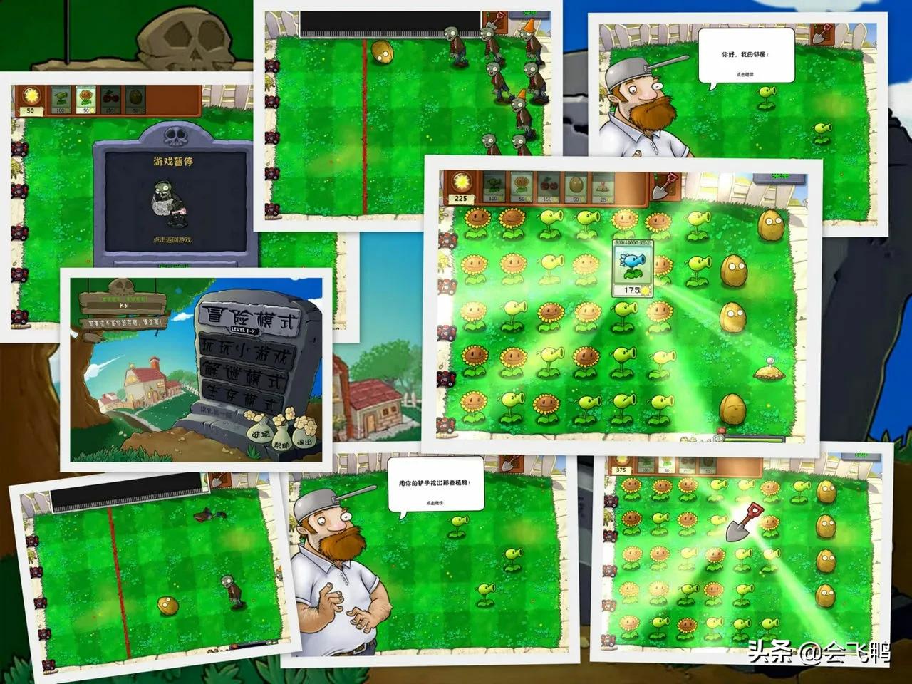 你像一开始,靠着一个豌豆射手,一朵向日葵,一个坚果,抵挡着僵尸们