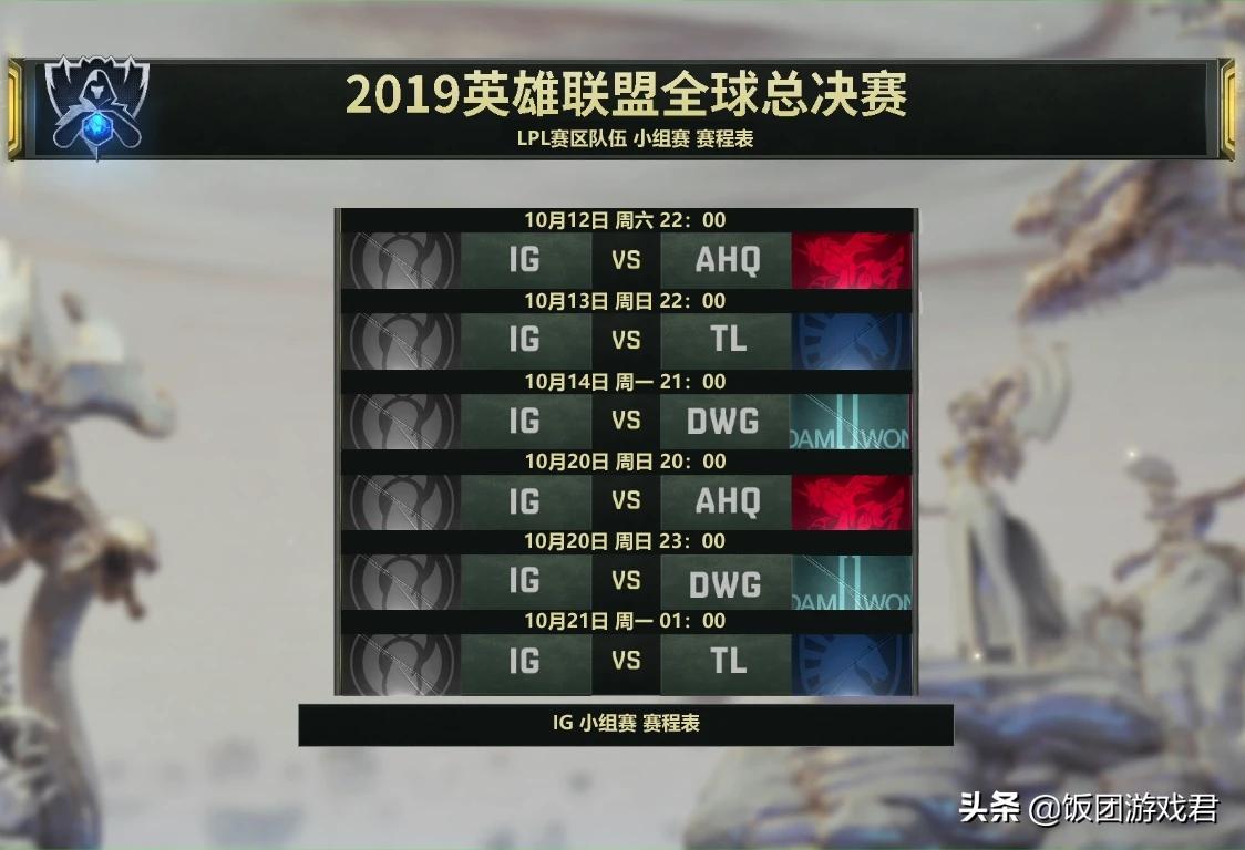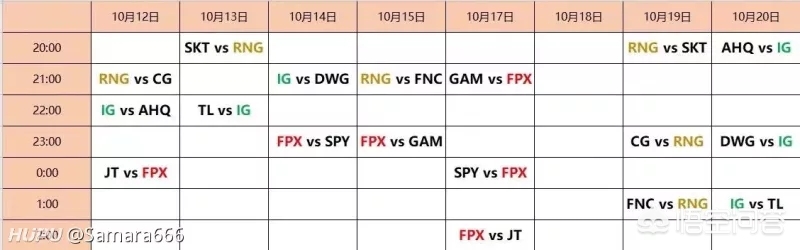 最后是三号种子IG战队,IG比赛赛程时间比较散乱,有20:00,有21:00,也有22:00,23:00甚至还有01:00,IG粉丝需要把握好时间看比赛。与RNG类似的是,IG小组赛会有一个几天空档期,从14日到20日之间一共四天没有比赛,这中间可以做出不少调整。