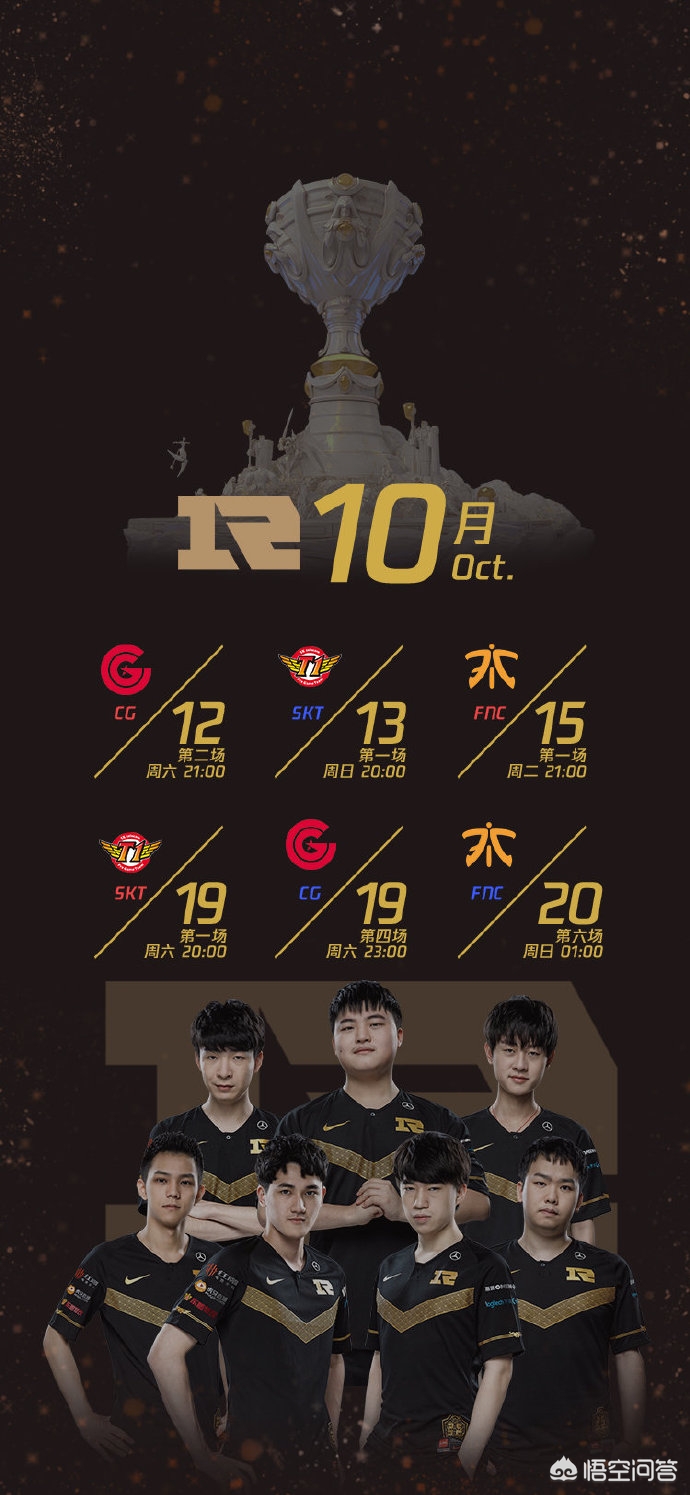 其次是二号种子RNG战队,RNG前四场比赛时间集中在20:00~21:00左右,也就是每天小组赛第一局或者第二局,这个时间相信很多RNG粉丝都有时间。RNG后两场时间较晚,一个23:00,一个01:00,需要注意的是RNG从15日比赛之后连续三天没有比赛,需要到19日才有比赛。