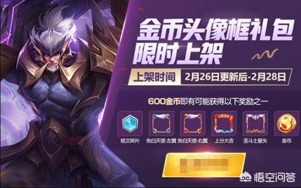 在月26日更新后到2月28日期间,玩家可以用600金币购买礼包抽取四款头像框,这四款头像框分别是:上分大吉、告白天使右翼、告白天使左翼、圣斗士星矢,此外奖池还有金币和铭文碎片!