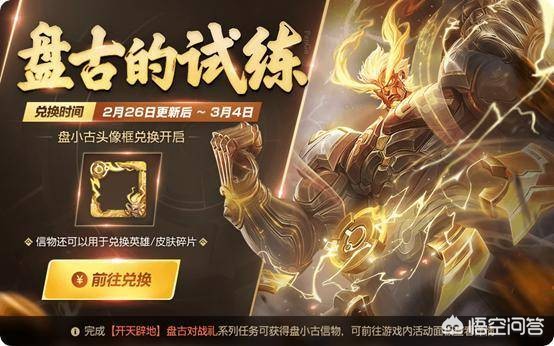 这个是之前2月22日盘古开启兑换就已经开启的活动,通过积攒盘小古信物就可以兑换盘小古头像框,10个信物即可领取头像框,此外还可以兑换英雄碎片和皮肤碎片等奖励!