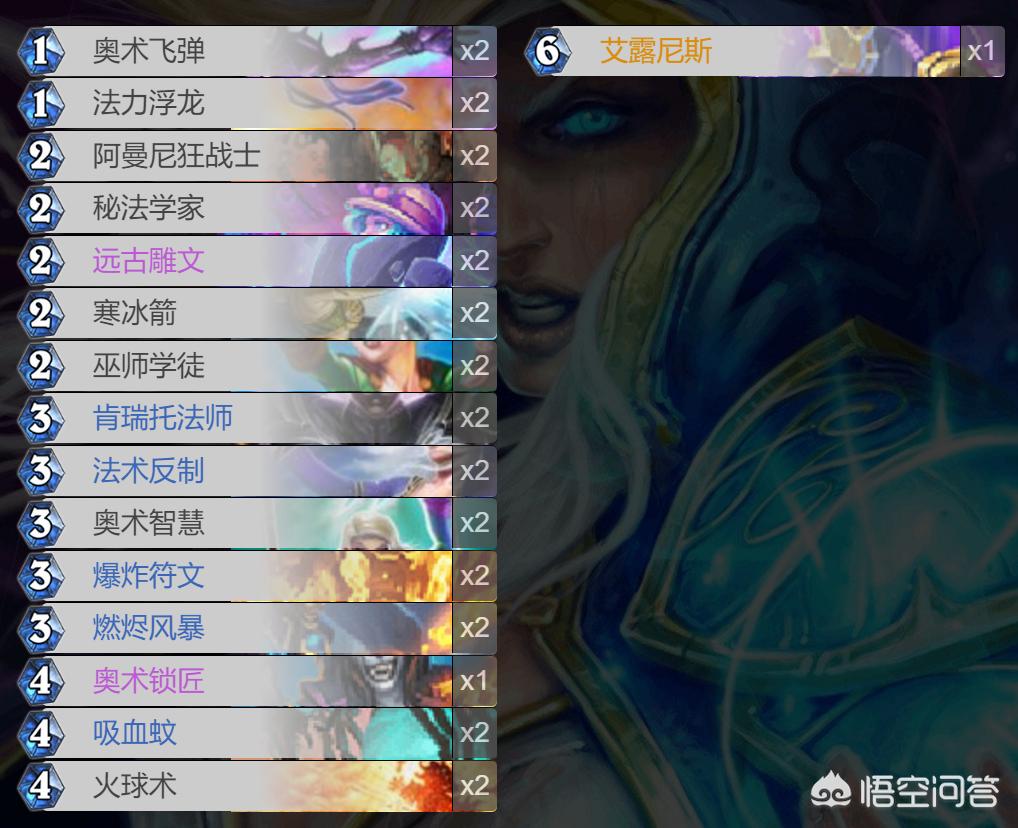 这个可以说是简单高效的代名词,而且糊起来绝对无人能敌,前期遵循随从战场+法术怼脸的策略,尽量保证自己随从的生存,毕竟5攻的法力浮龙和阿曼尼真的厉害,加上法术反制以及爆炸符文的 威胁,对手既站不住场也解不了场。强烈推荐!