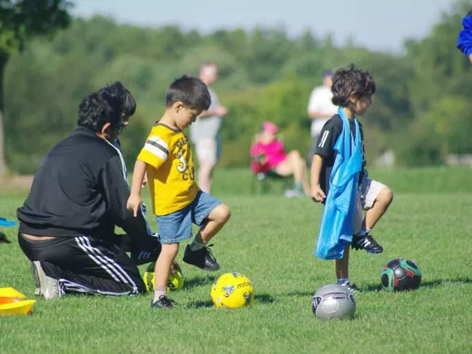 我们家不是很富裕,也没有什么电动汽车之类的高档玩具。一天最普通的就是踢踢足球,玩玩篮球。带着两个孩子,天冷了把足球踢来踢去,玩烦了就拍会篮球,还挺暖和呢,也挺开心。
