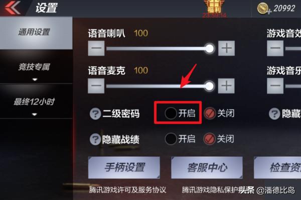 4、在通用设置中,勾选二级密码后方的开启选项。