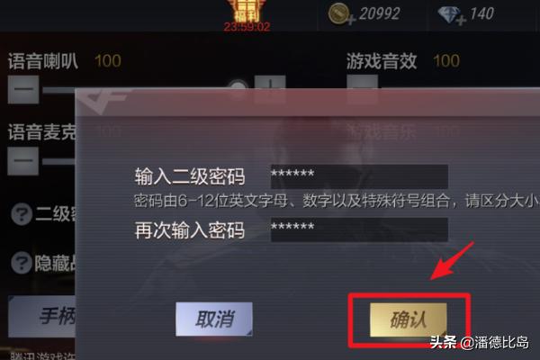5、勾选后,在二级密码设置界面,输入需要设置的二级密码,点击确认。