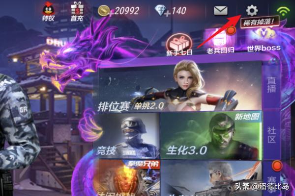 2、登录后在游戏的主界面,我们选择右上角的设置图标。