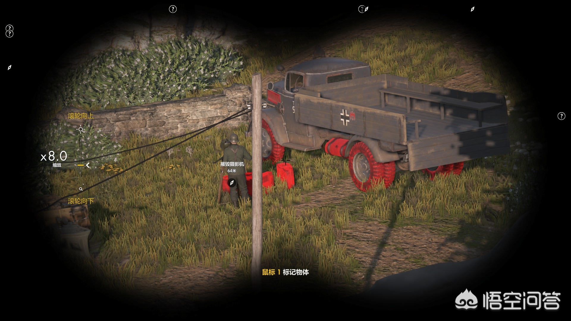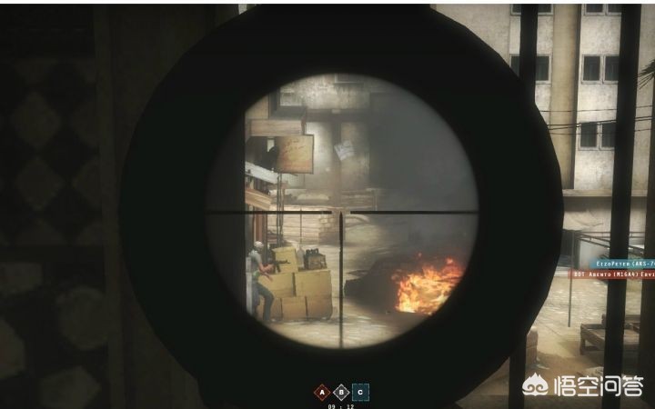 初级难度下,可以被引爆的地方都会有色彩标注,士兵也会显示距离,瞄准时,会有提示的准星,来帮助玩家进行瞄准,可以说在低级难度下,《狙击精英4》更像是一款欣赏击杀慢动作的游戏。