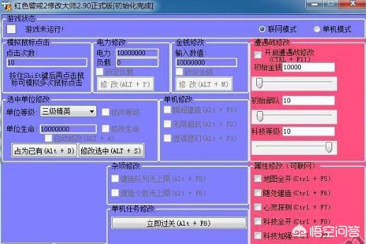 虽然不用作弊器玩游戏是非常有体验的,不过在全通关以后就会想着去用修改器来玩玩了,因为很多时候一开始都是劣势局,瞬间扭转局面变成优势局,就少不了修改器,红色警戒的修改器内容也不多,但是已经非常实用!最普通的修改方式就是增加自己的经济,再来一个无限电力,精心打造100以上的坦克和飞机,会给玩家带来不同凡响的体验!战斗场面是非常壮观的。