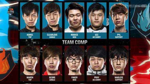LPL全明星阵容:上单Korol,中单Rookie,打野厂长,下路组合UZI+PYL。这是首次LPL全明星有韩援的加入,Rookie实力不俗,在那届全明星中有很多亮眼的表现。这次全明星也是狂小狗UZI的第一次全明星。幸运的是,这五人如今依然在职业赛场上奋斗着。
