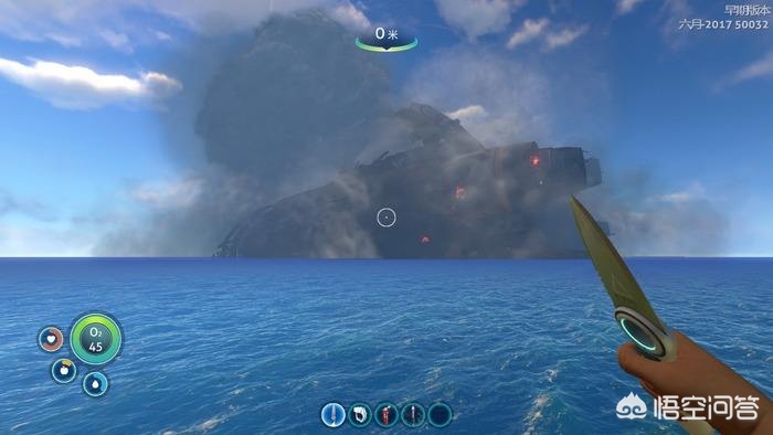 最后刚开始玩的时候可能会看到浓烟滚滚的极光号,就十分好奇,千万记住好奇害死猫,还是先发展一下,建出自己的海底基地,再慢慢探索极光号!