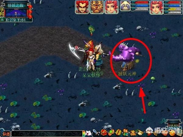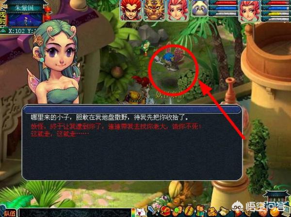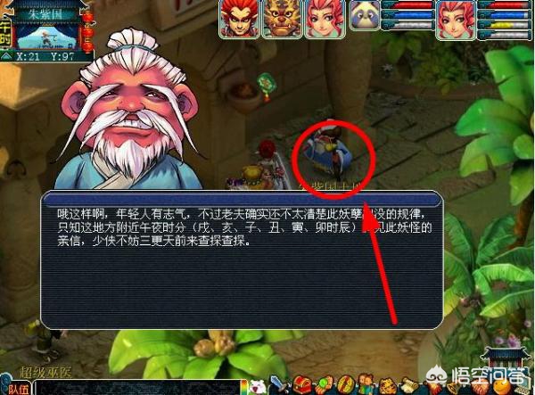 4、然后到朱紫国102.100出找妖怪亲信进行战斗,战斗成功后进入蜃妖之腹(妖怪亲信只在午夜时分:戌、亥、子、丑、寅、卯时辰出现)