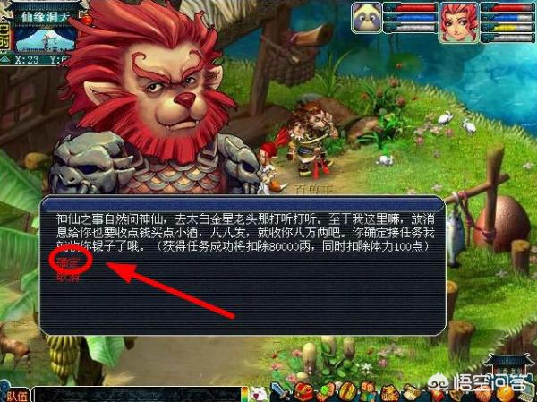2、点击他领取坐骑任务,点击确定,领取任务需要花费80000两游戏币和100体力。