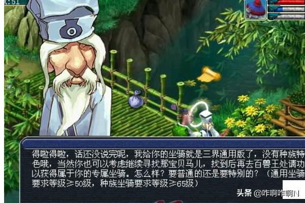 6、然后到长寿村51.18找太白金星,这时候可以选择领取一只公共坐骑,也可以选择继续任务获得种族坐骑。