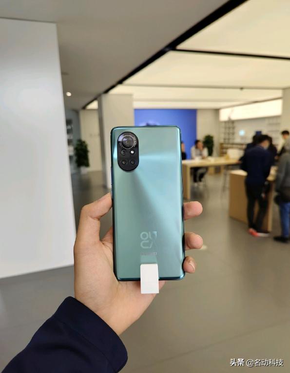 看过真机图后,感觉外观上华为nova8还是不错的,背面应该是采用某种工艺,光线折射的效果能够以摄像模组位置发散出去,青绿的纯色设计显得比较素净。