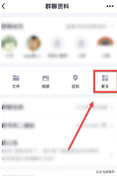 4、点击群聊资料页面的更多选项,如图。