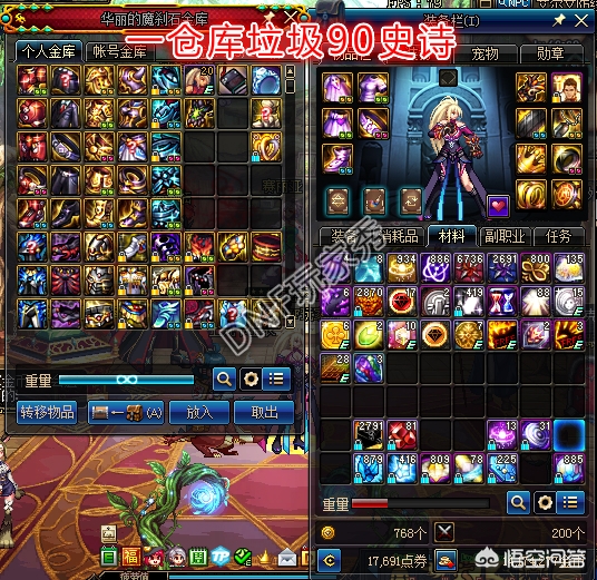 曾经的粉,都是天价,现在都是白菜,全民史诗,而且你刷出史诗了,还要升级,打造,然而过补了多久,又变垃圾了,来看我仓库里面的85,90史诗垃圾,不愿意分解。
