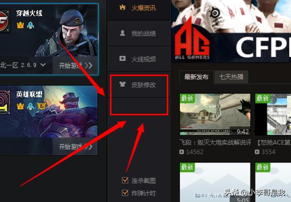 5、在”皮肤修改“里面,可以设置”点杀图标“、”击杀音响“、”游戏喷涂“、”界面皮肤“等设置,设置完成以后,点击”开始游戏“即可。